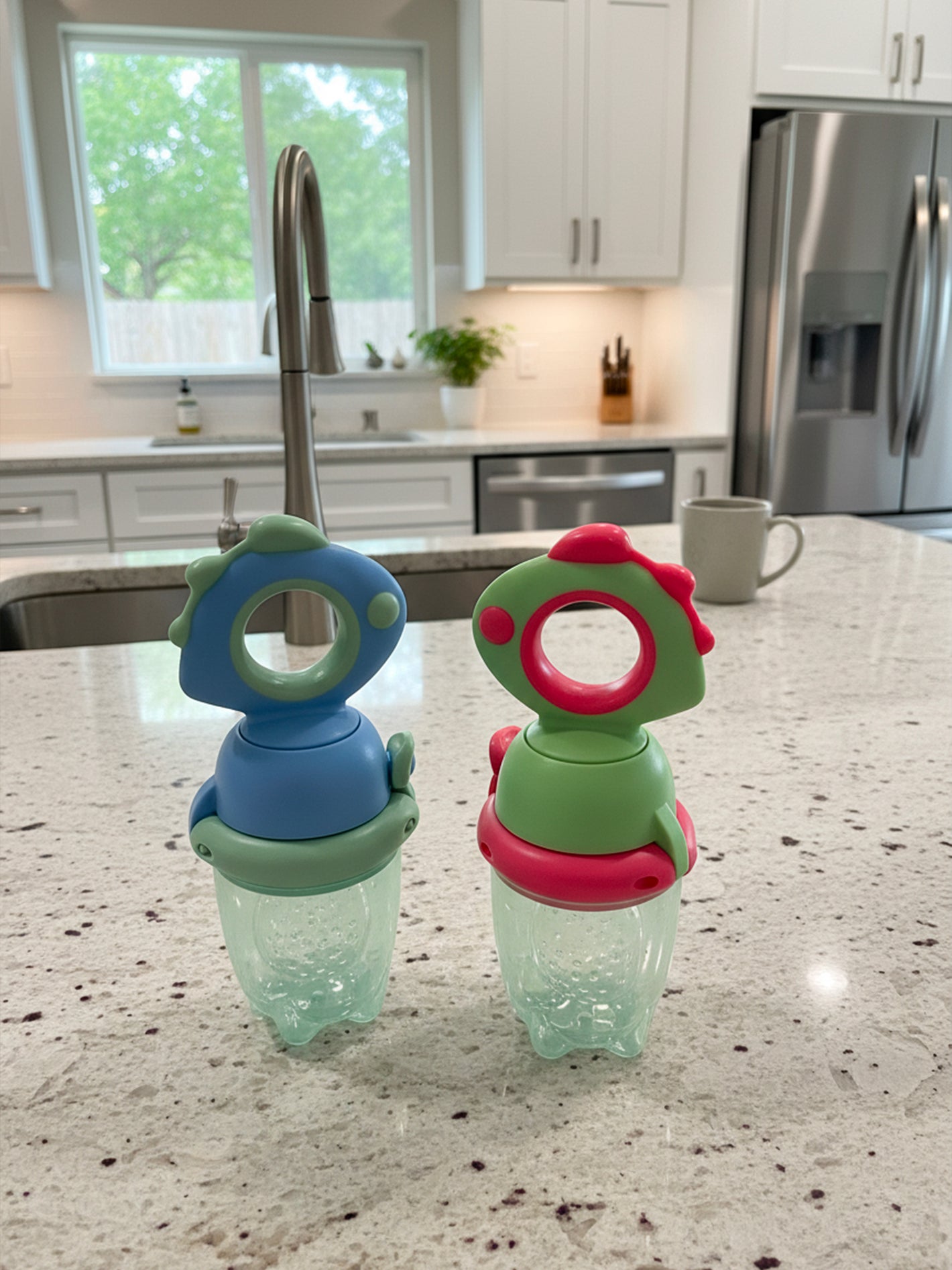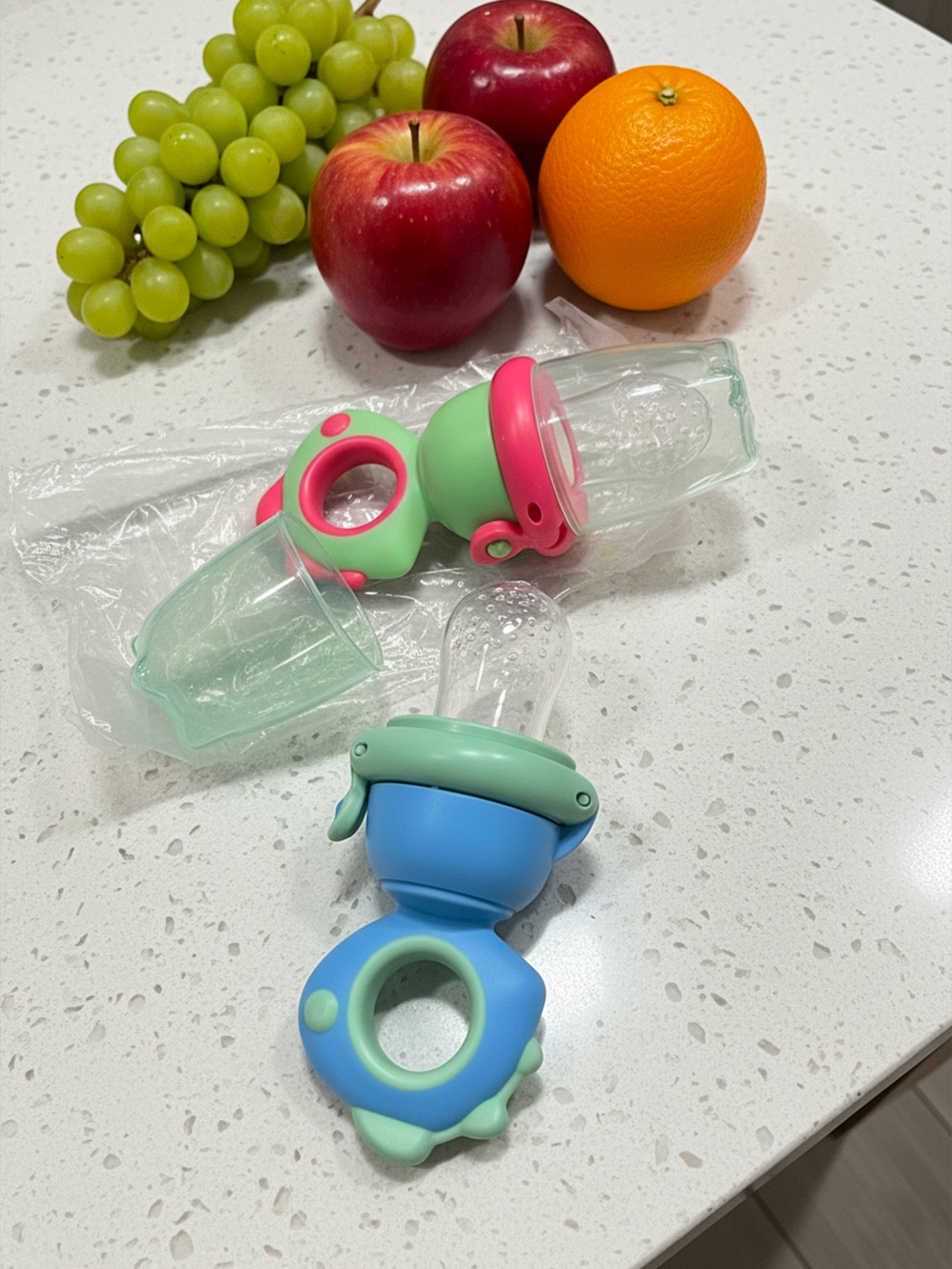 "Finally, a snack without the mess. Our little guy loves fresh fruit but I was tired of finding smashed banana in his neck rolls. This thing is genius. He gets the flavor and the nutrition, and I don't have to change his outfit afterwards. The handle is easy for him to grip. Solid buy."
